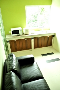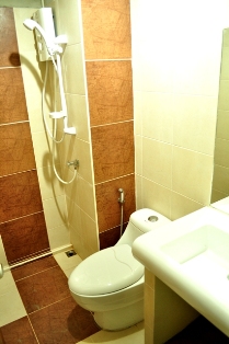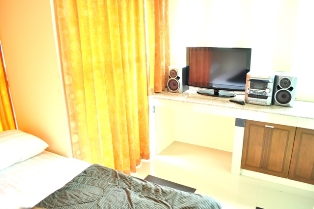 In-room furniture: air conditioner, water heater, bathtub (special room only), wardrobe, bed with mattress, kitchen counter with sink, stereo and TV counter, clothes line and curtain